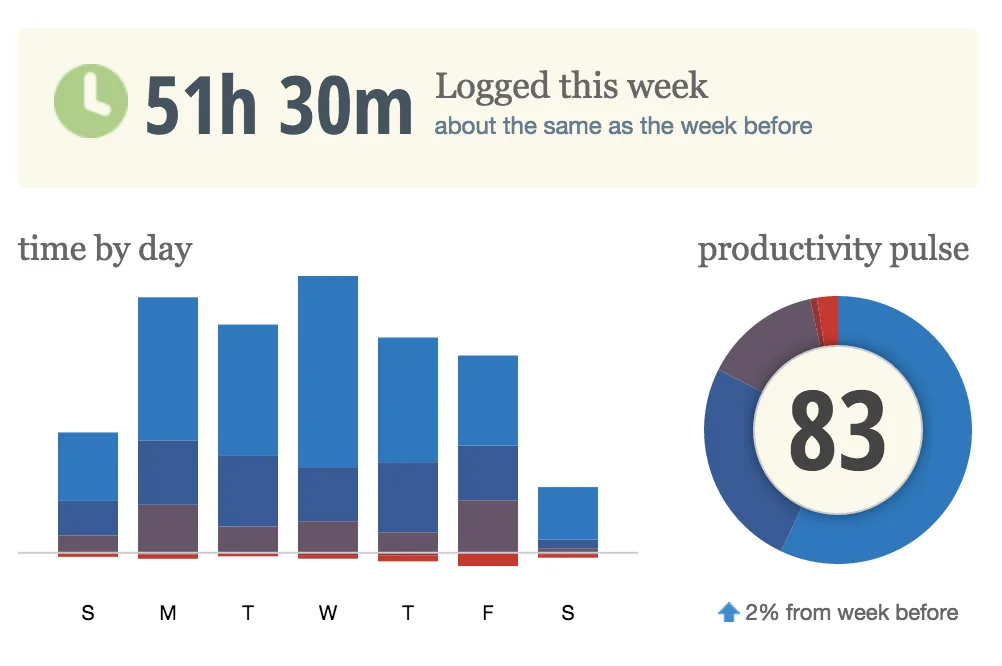 In the week of January 31st to February 6th, my Rescue Time logged 51h 30m.